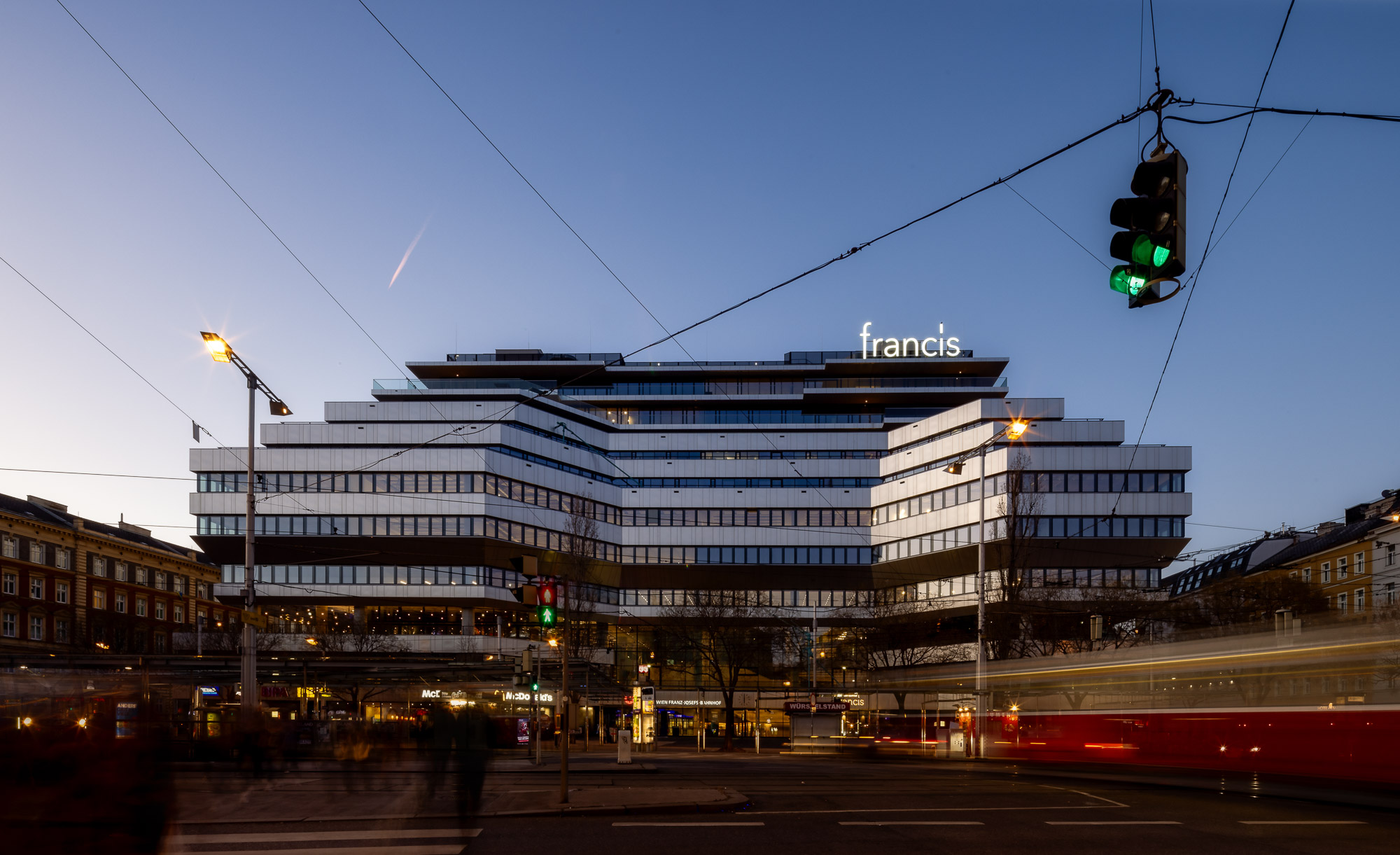 Josef Weichenberger Architects (JWA) and Delugan Meissl Associated Architects (DMAA) transformed the terminus station and the office building above it under the name Francis from an impassable barrier in the centre of the district into a transparently permeable centrepiece of the new Althan Quartier.