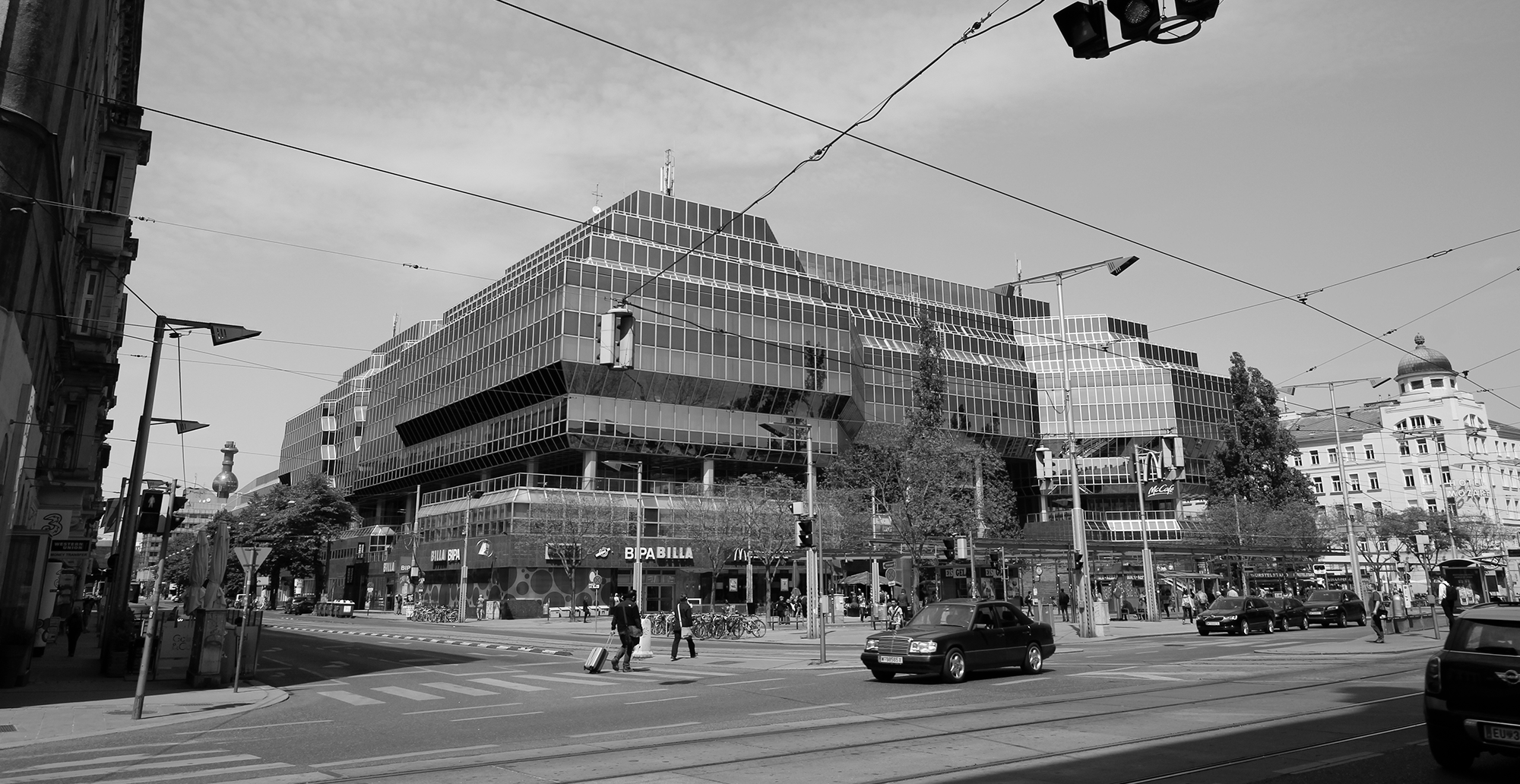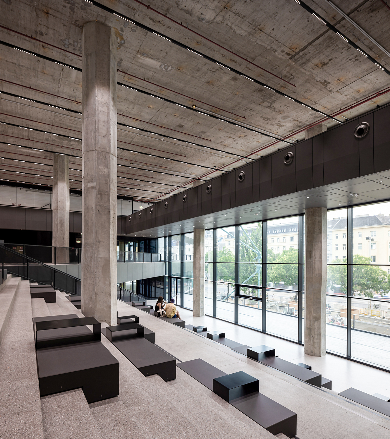 Characteristics of the existing building in its function as the headquarters of Bank Austria were the mirrored façade and a striking, expansive but almost unused staircase. The mirrored façade emphasised the hermetic nature of the building, while the monumental gesture of the external staircase dominated the area of Julius-Tandler-Platz. The remodelling allowed these outdated stylistic elements to be removed.