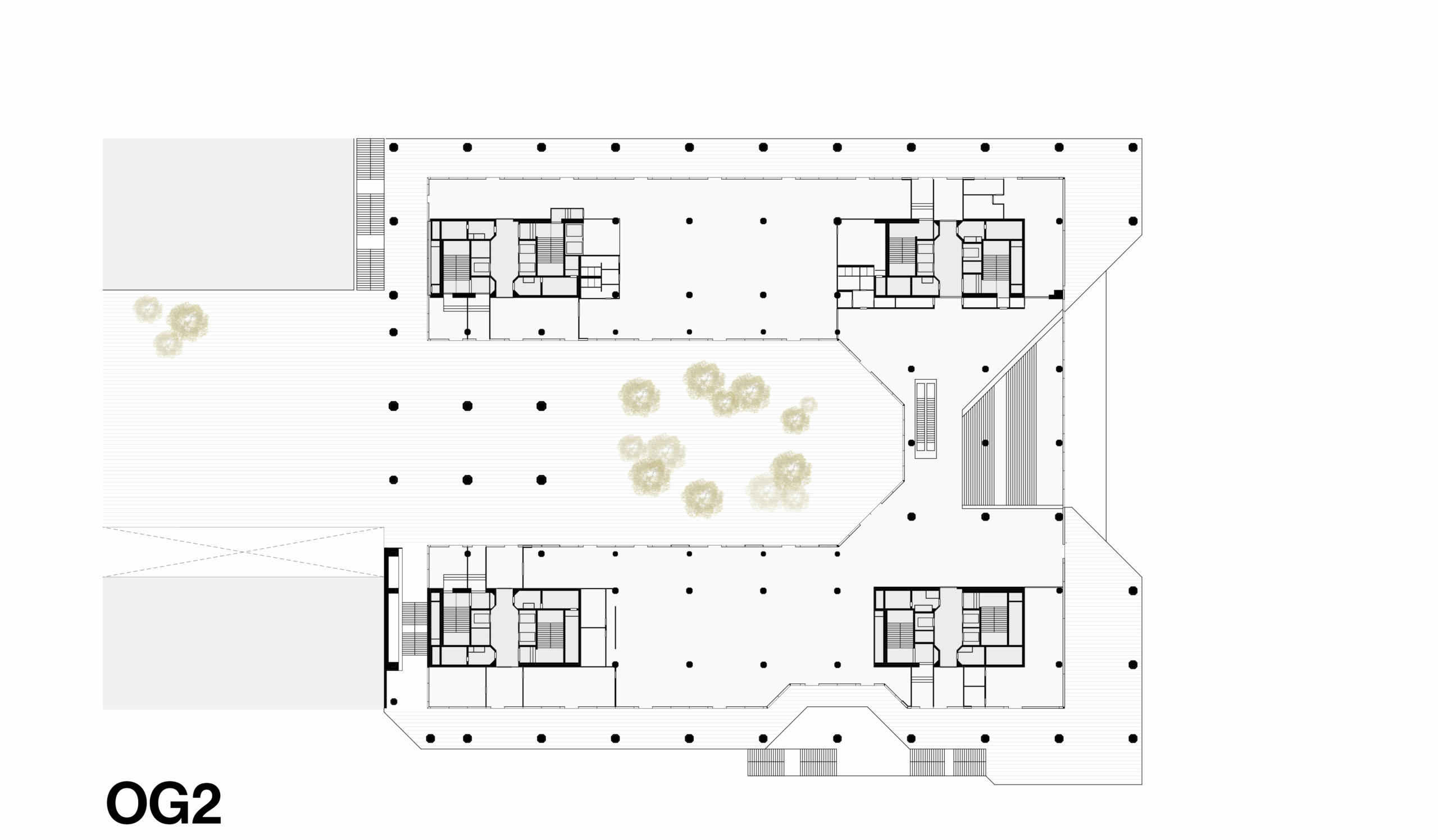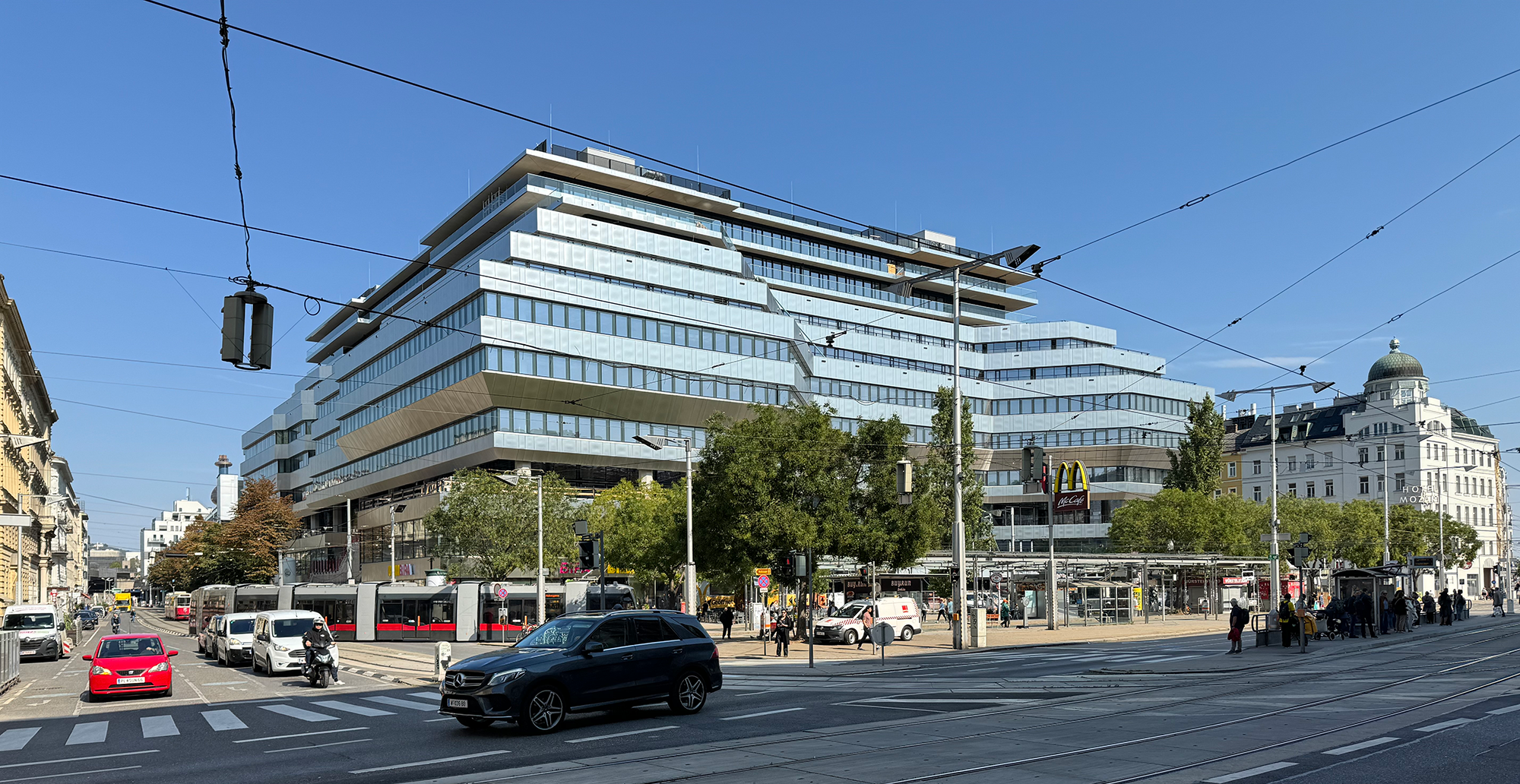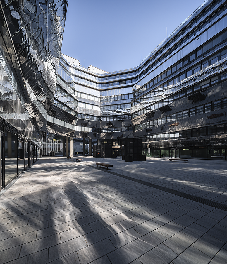 One of the main focuses of the planning process was to create a new opening to the neighbourhood: new urban places to linger, semi-public spaces, barrier-free access and restaurants with open spaces were to be created. The dimensions and substance of the office building were retained, but new open spaces were created, making Julius-Tandler-Platz much more attractive with a new look and increased accessibility.