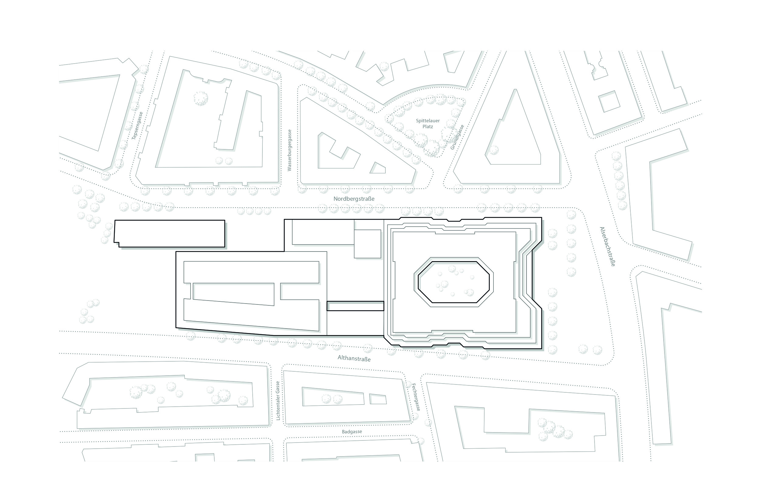 Decisive premises of the project development were the pedestrian permeability, the opening to Julius-Tandler-Platz, the broadest possible mix of uses, the redensification of an urban core zone and the harmonious integration into the urban space.